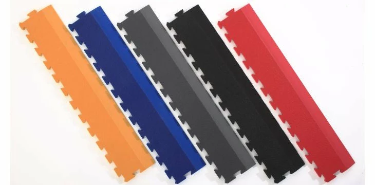 Each edge strip is interlocking and will lock onto one side of the full sized mats providing a neat, tapered straight edged finish.Β